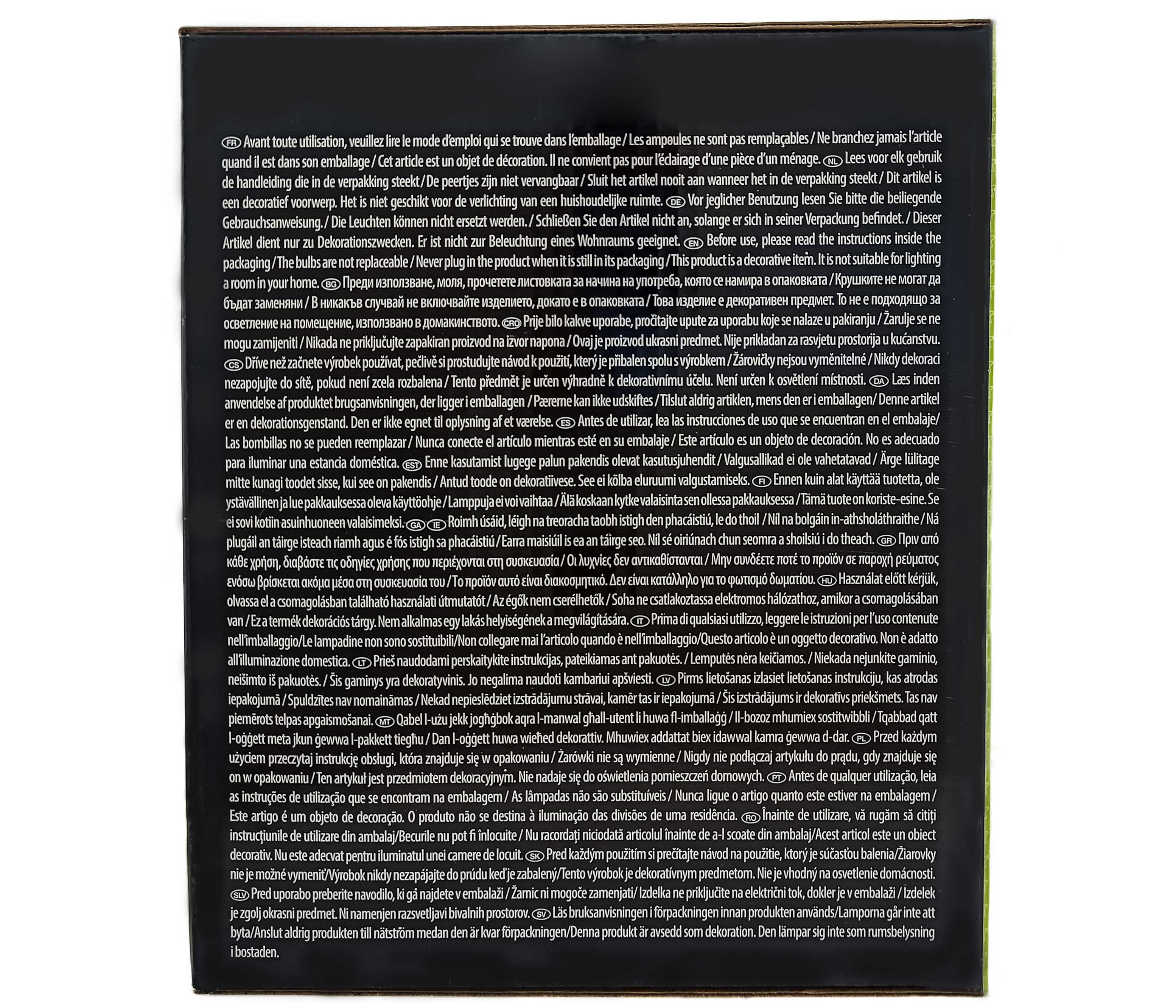 Prezentowane tu lampki dekoracyjne mają zróżnicowaną długość zwisających kaskadowych przewodów, najdłuższe to 60cm. Żaróweczki rozmieszczone są bardzo gęsto, jest ich łącznie 444. Mogą świecić światłem stałym lub migotliwym w 6-ciu różnych trybach animacji. Daje to niezwykły dekoracyjny efekt migotliwej świetlnej kaskady.